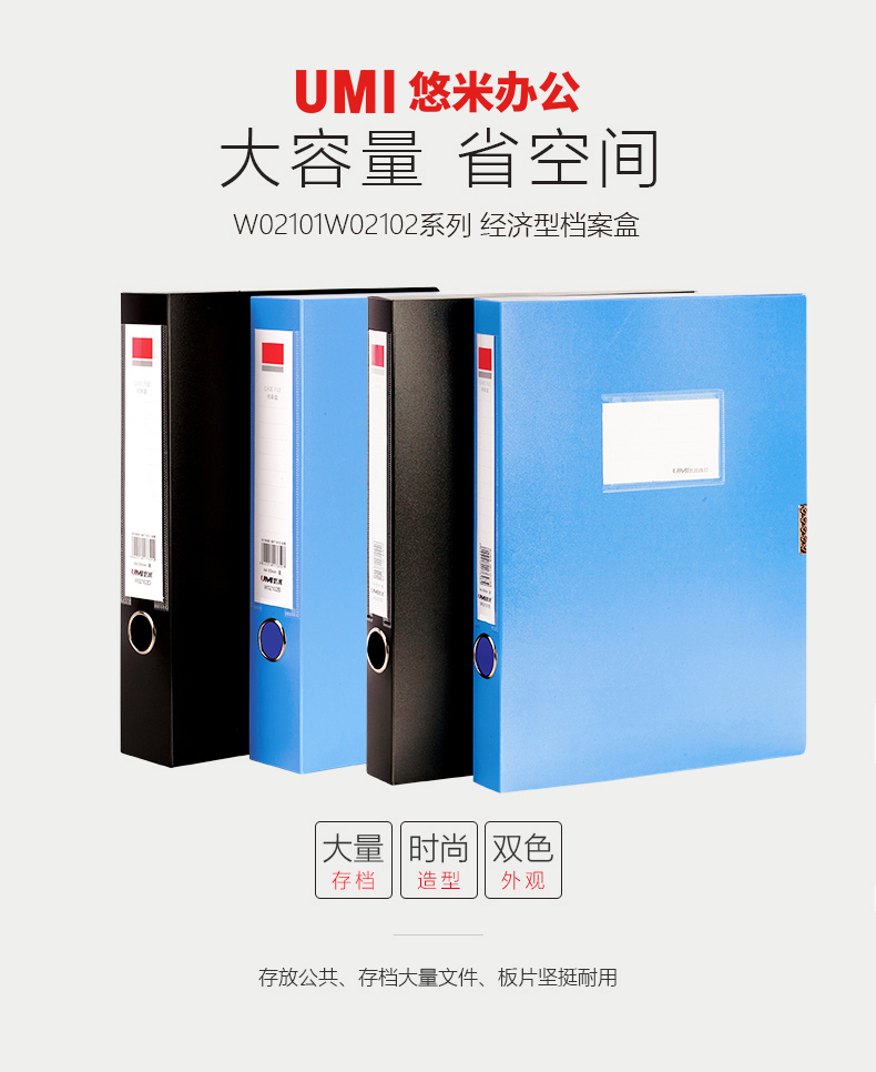 当前位置:首页 > 办公及体育用品用品-文件管理用品-档案袋(盒) > 悠米 经济型PP档案盒,35mm W02101B 蓝 48个/大包 (一口价产品)