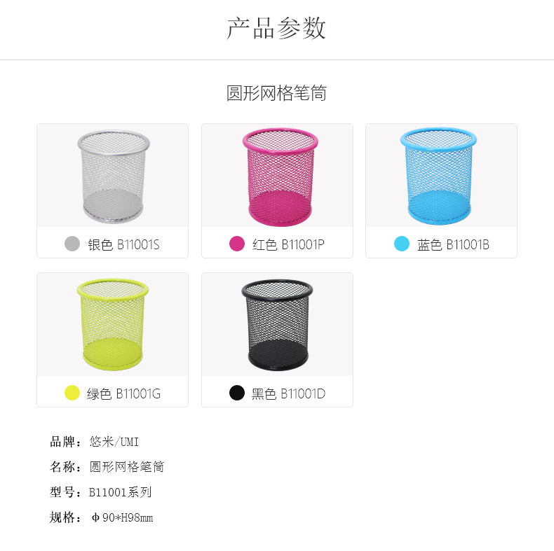 悠米 彩色圆形金属网格笔筒 B11001P 粉 96个/大包