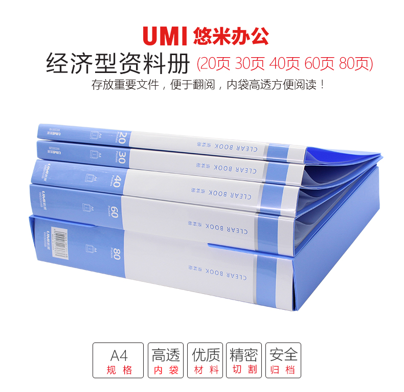悠米 经济型资料册,40页 W03003B 蓝 60个/大包