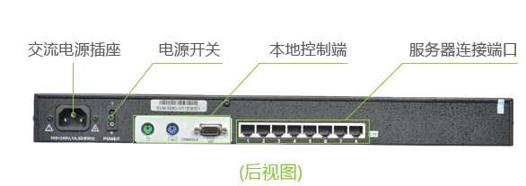 8路RJ-45接口的KVM端口,通过CAT5模块连接服务器(本地最远支持50米)