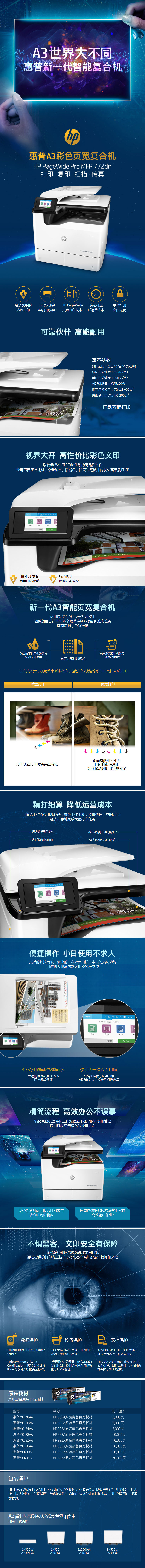 山西惠普HP772dn A3彩色页宽复合机(打印复印扫描页宽高效秒速多功能一体机)